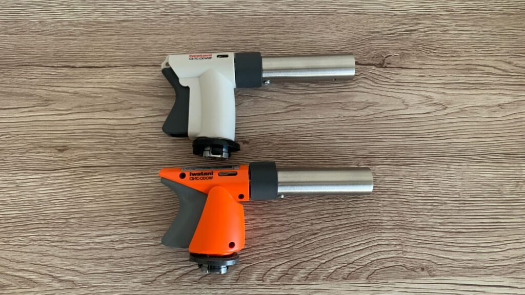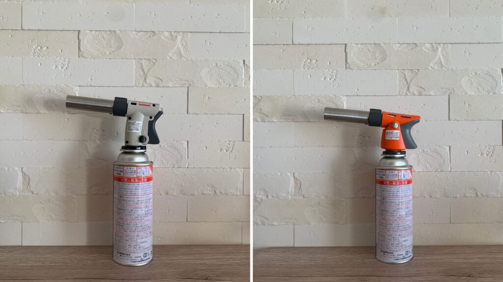 大きな違いはウォームグレー(炙りの達人)、オレンジ(アウトドアトーチバーナー)というカラーの違いです。