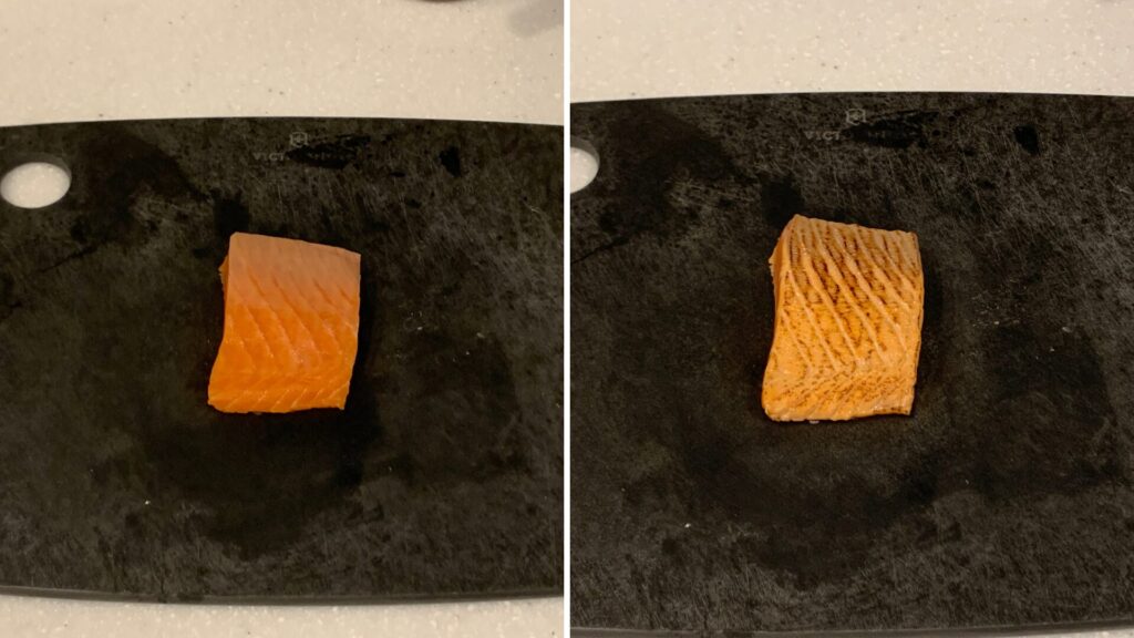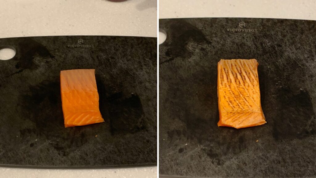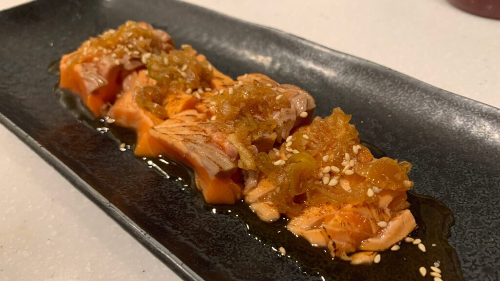 尖った炎、柔らかい炎で試してみましたが、素人目には炙りの違いはそこまで感じることはできませんでした。