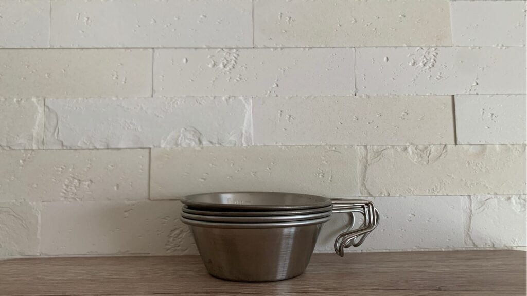 我が家ではチタン製のシェラカップを使っています。軽量で壊れにくいので子供にはぴったりですよ。