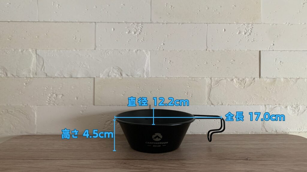 サイズは全長17.0cm、直径12.0cm、高さ4.5cm、容量は320mlです。