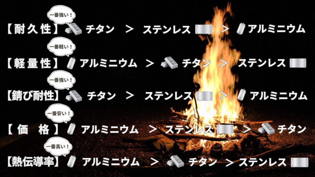 どの素材も扱いやすいので子供と過ごすファミリーキャンプにおすすめです。