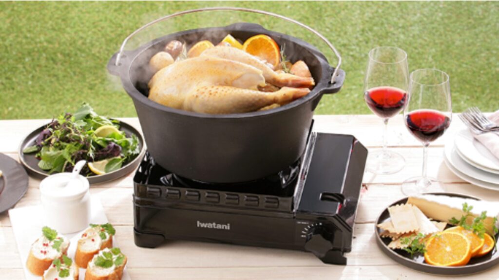 タフまるは重量20.kgのダッチオーブンが使えるほどの頑丈なカセットコンロです。
