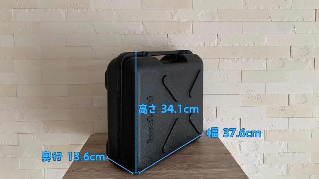 専用ケース(本体含む)は幅 37.6cm × 高さ 34.1cm × 奥行 13.6cm、重量は3600gというサイズです。