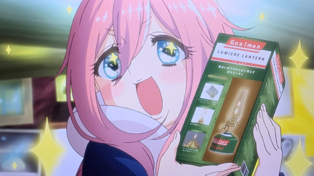 キャンプ道具を初めて買う喜びをなでしこが表現してくれています。